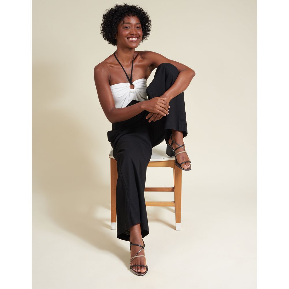 Esse modelo possui tiras cruzadas e coloridas com acabamento metalizado e material soft. A fivela e o salto com visual amadeirado trazem um toque rústico e moderno ao look.