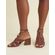 Sandália média em couro camurça com tiras chapadas e detalhe de argola. Amarração delicada e salto com efeito madeira. salto aprox: 7cm