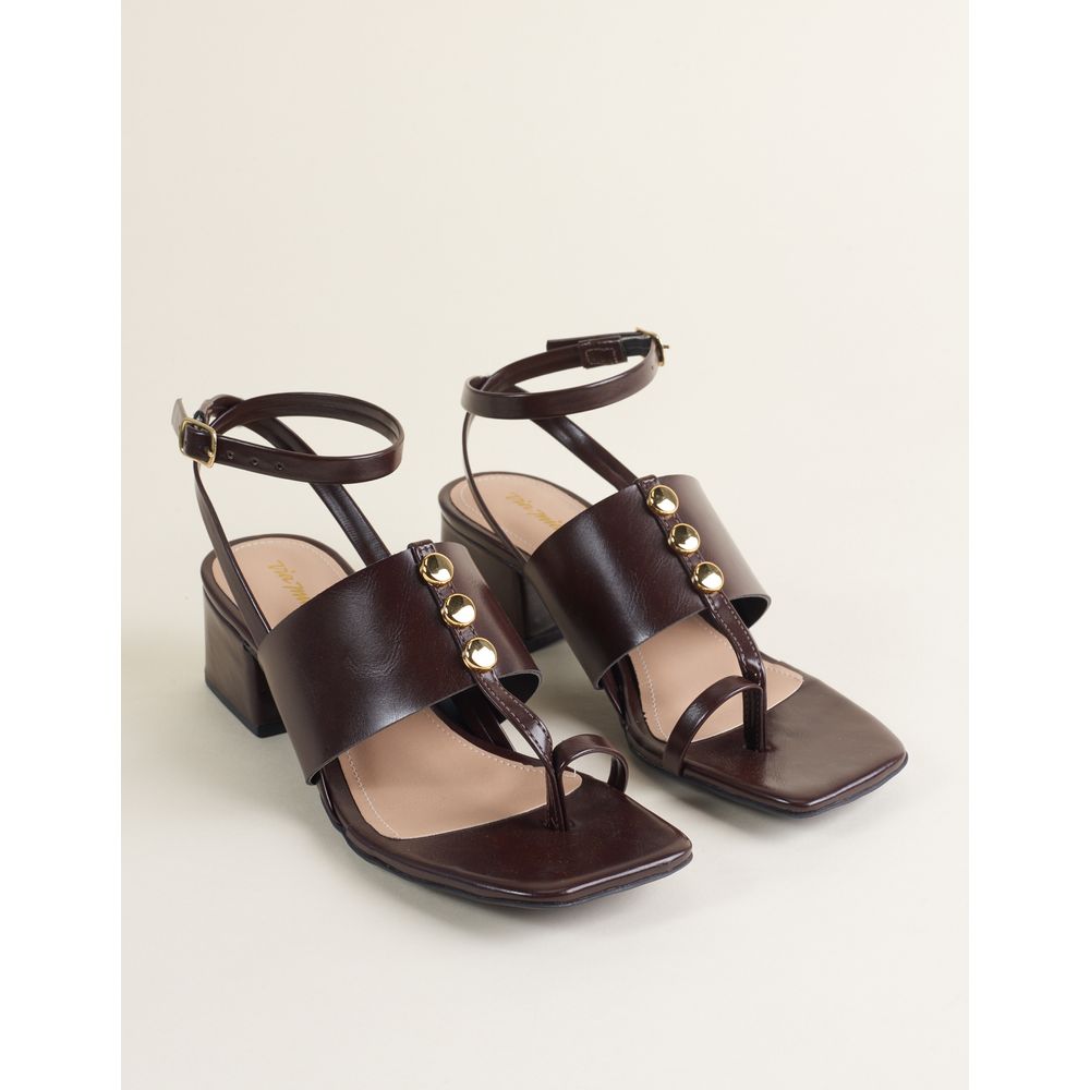 Sandália média confeccionada em material soft, com detalhe de aplicações em resina que adicionam um toque moderno ao modelo. Possui fechamento por fivela para melhor ajuste, enquanto o salto equilibra conforto e elegância no uso. Altura do salto: 5 cm.