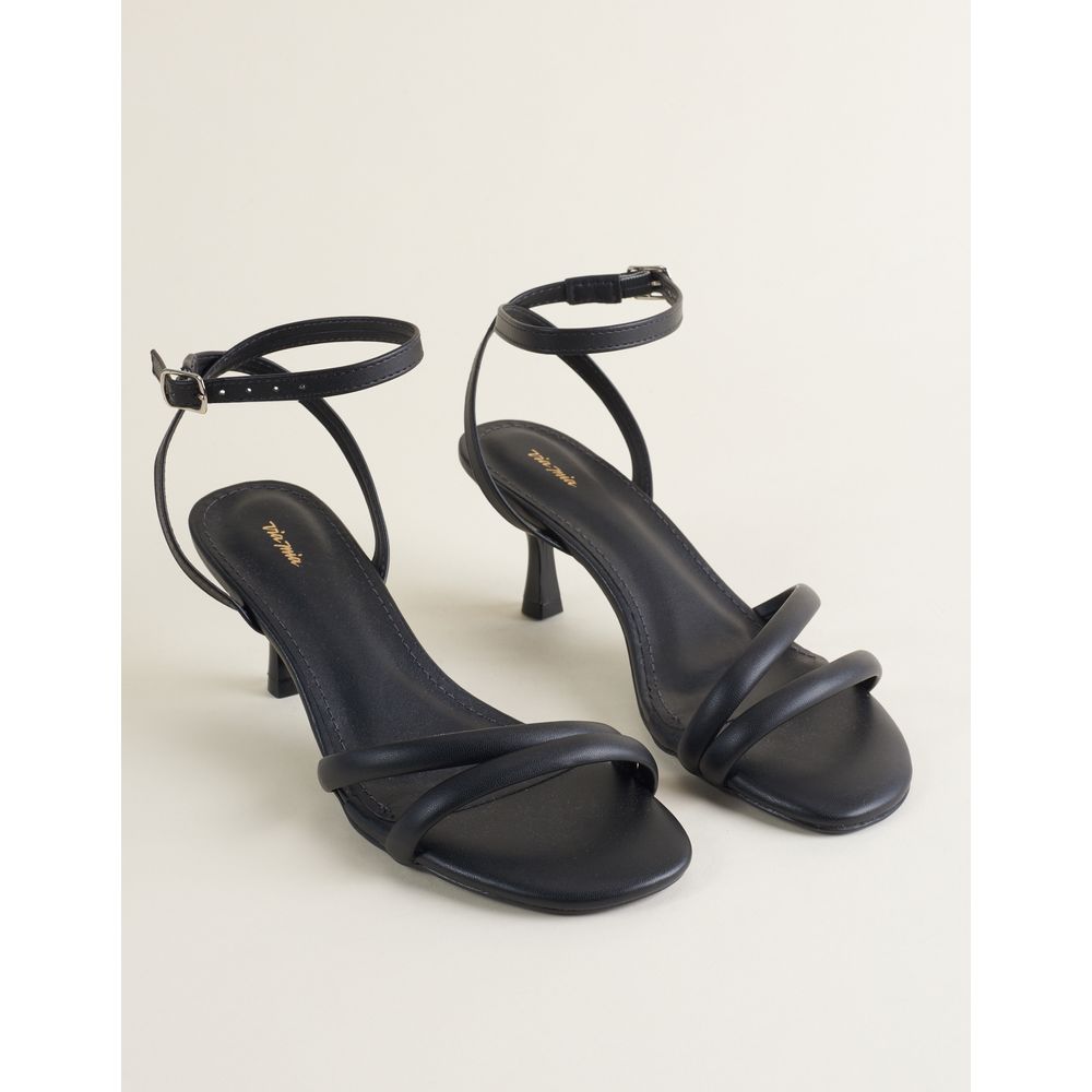 Sandália Média Salto Fino Com Tiras - Preto