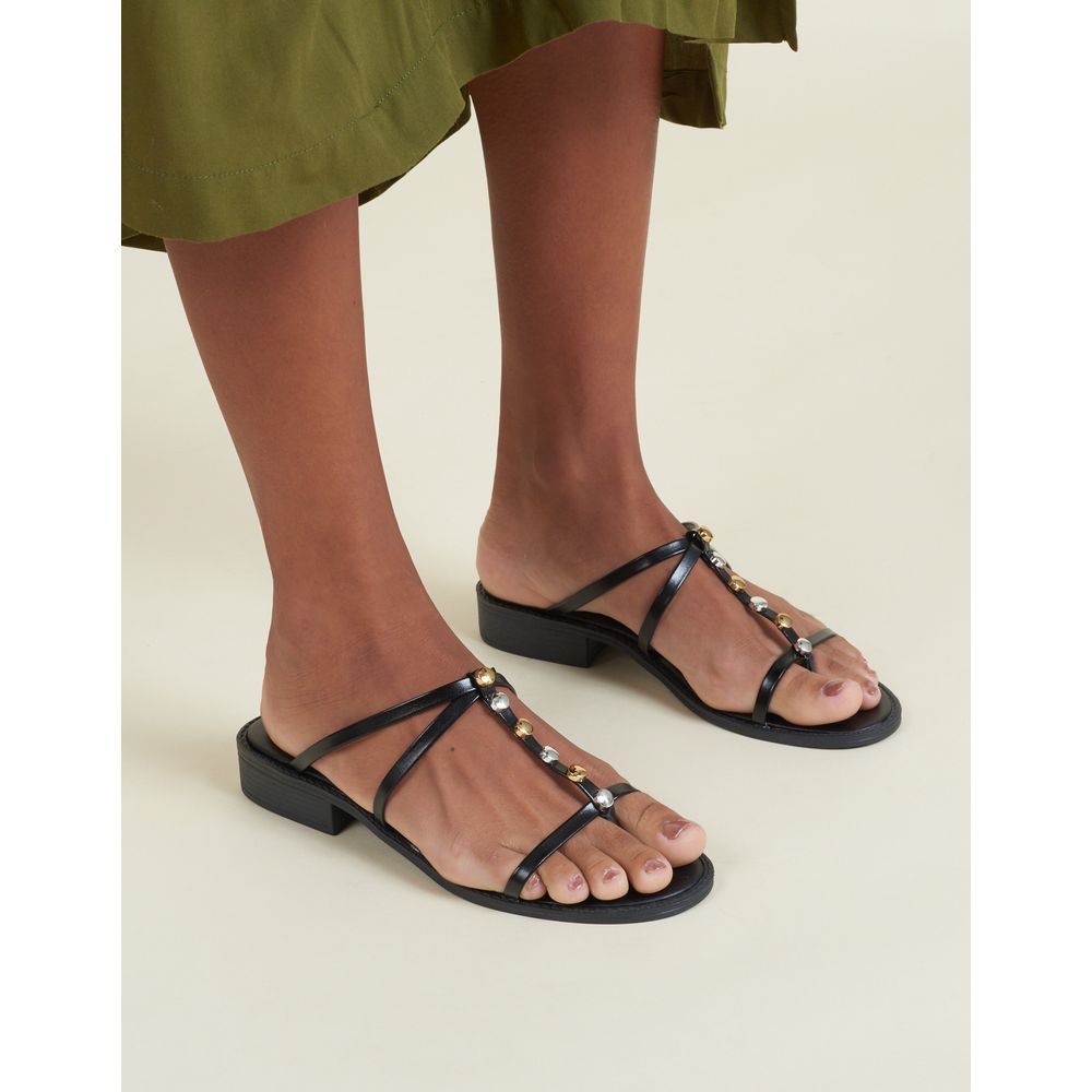 Com estilo moderno, essa sandália média em soft, material alternativo ao couro tem aplicações de metais com mix de banhos, que adicionam um toque especial. A palmilha no mesmo material do cabedal e o solado com vira detalhada são perfeitos para compor looks versáteis e cheios de personalidade. Medida do Salto aprox. 2,5cm