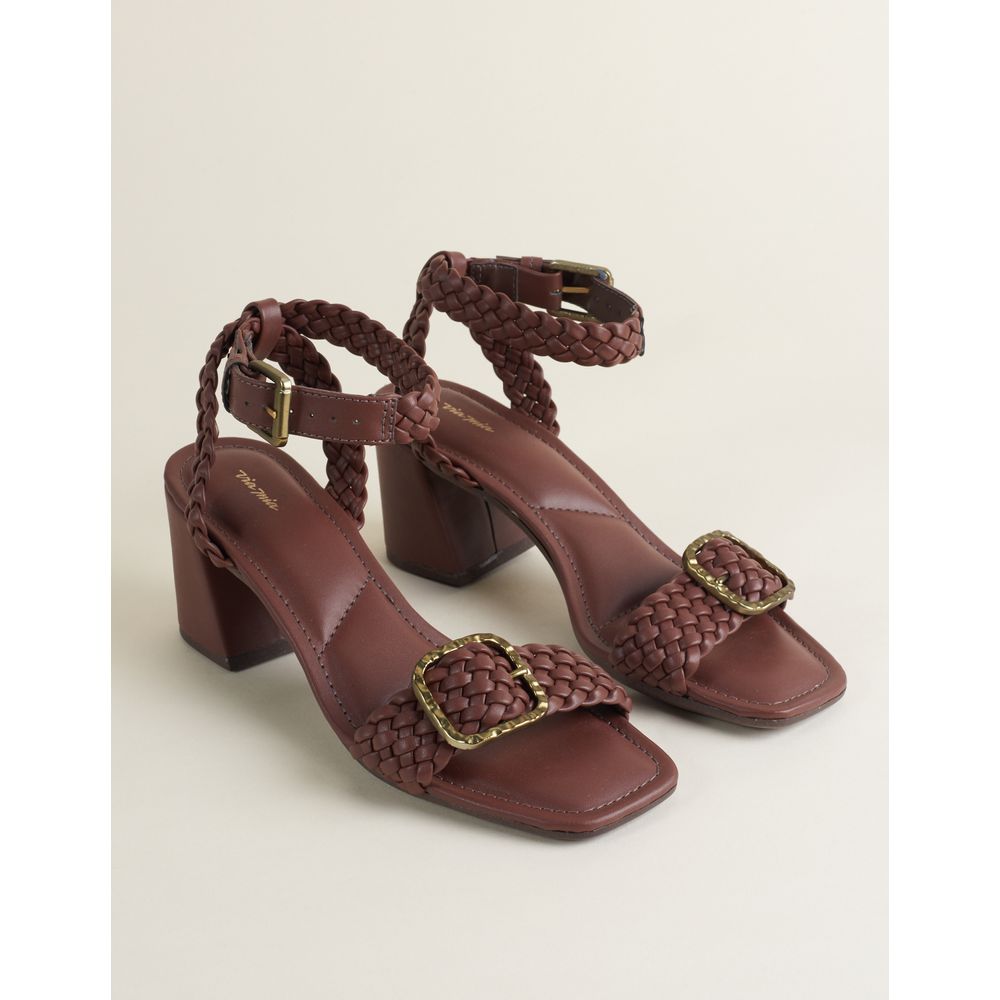 Sandália média em material soft com tira trançada e detalhe de fivela. Fechamento lateral e salto forrado no mesmo tom. Altura: 7cm. Estilo e conforto em equilíbrio.