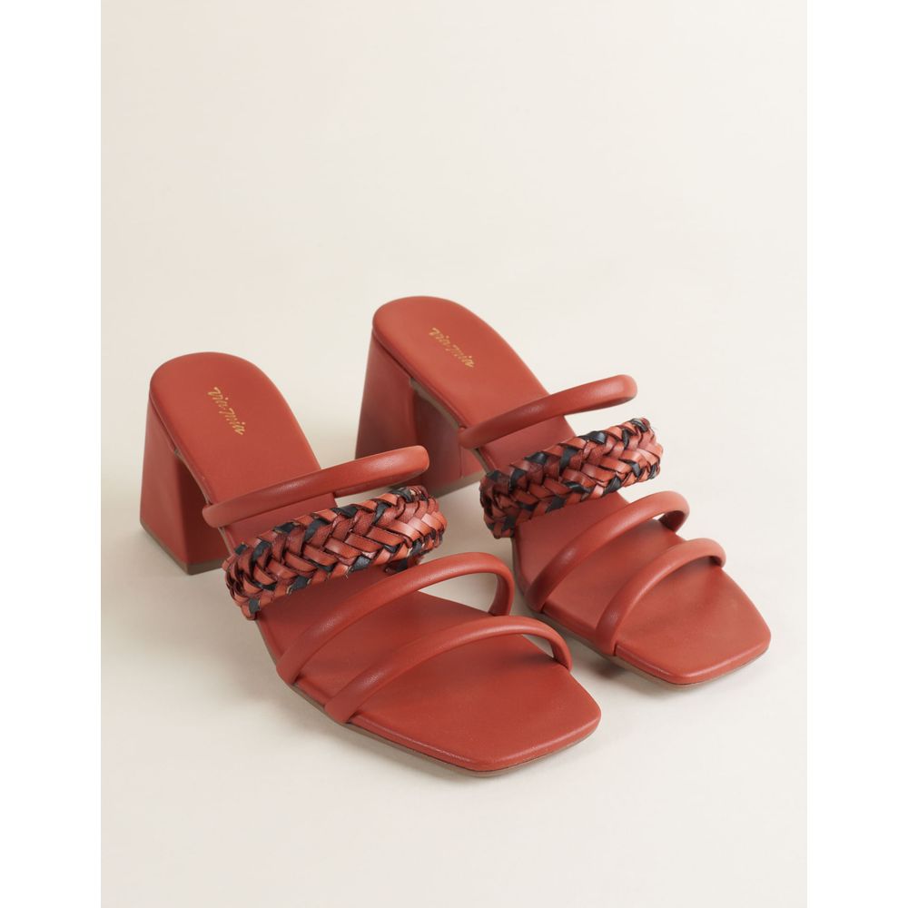 Sandália média tipo tamanco em soft com tiras e detalhe em tressê. Palmilha e salto forrados no mesmo material. Altura: 6,4cm. Um clássico repaginado.