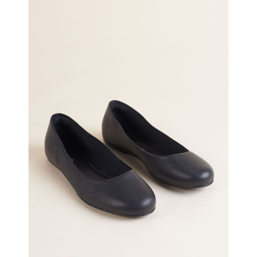Sapatilha Bico Arredondado em Couro Via Mia - Preto