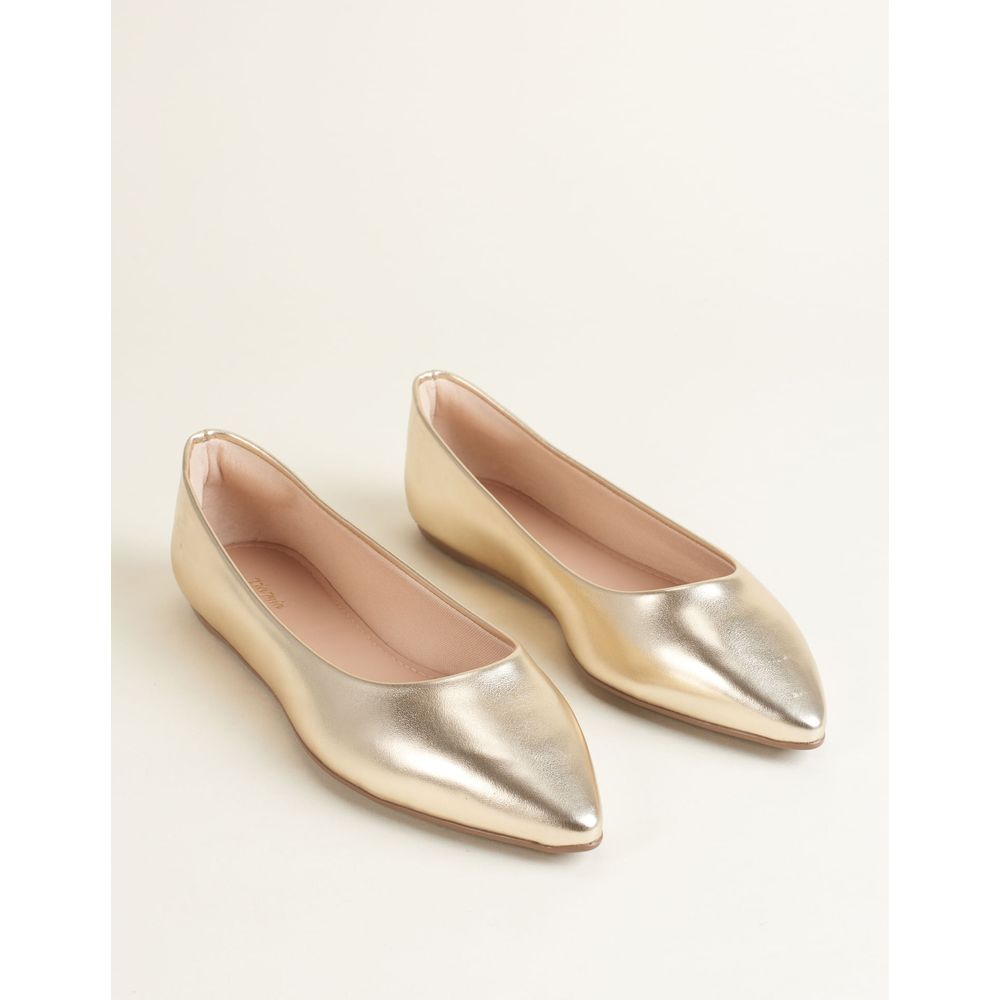 Sapatilha Bico Fino Soft Metalizado Via Mia - Ouro Light