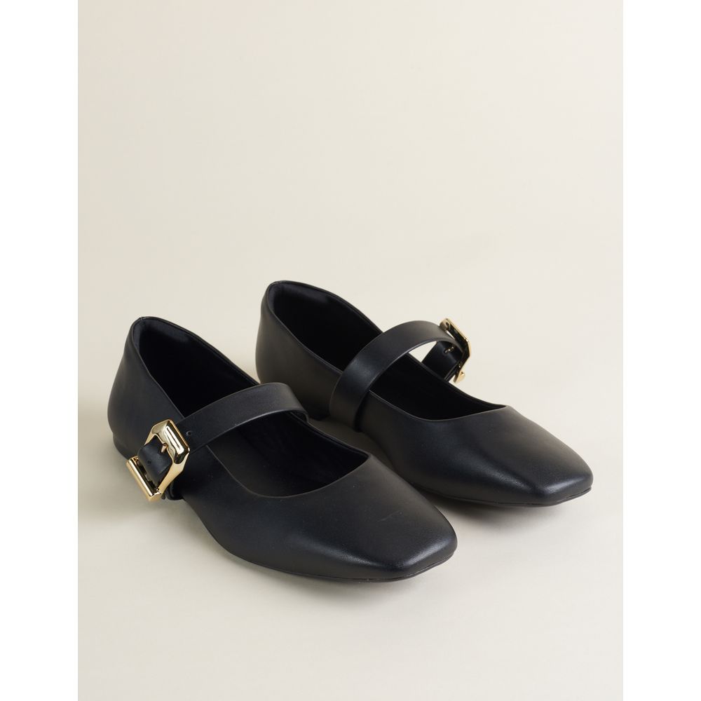 Sapatilha estilo boneca em material soft, com bico quadrado e tira no peito do pé com fechamento por fivela. Um clássico delicado e confortável.