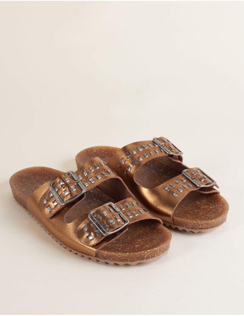 Rasteira Salomé Couro Metalizado - Bronze