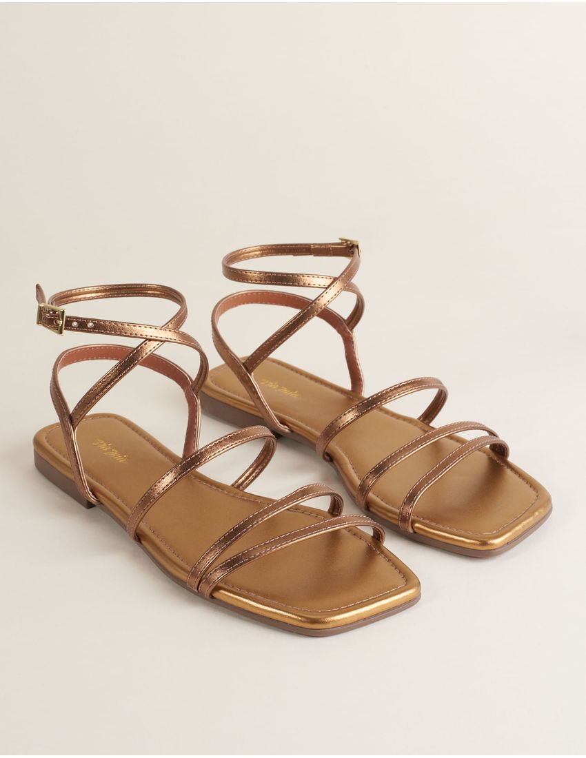 Rasteira Tiras Finas Metalizadas - Bronze