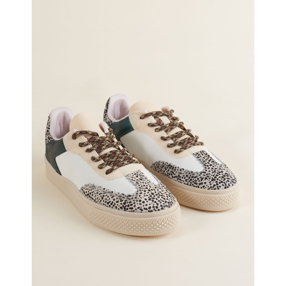 Tênis em couro com recortes e detalhe metalizado. Design moderno e cheio de personalidade com mix de materiais e estampas que a gente ama e dá um up em qualquer look!