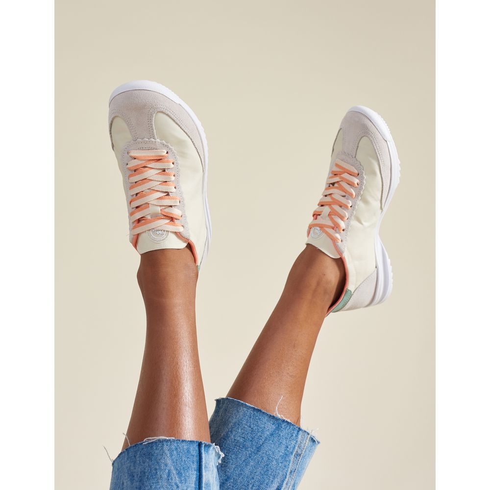 Tênis esportivo em tecido com recortes em couro camurça e solado com biqueira. Estilo sport casual que tá super em alta!