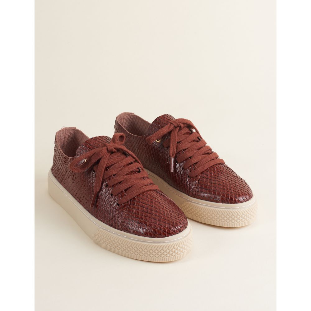 Tênis Via Mia Alma Couro Serpente - Cafe