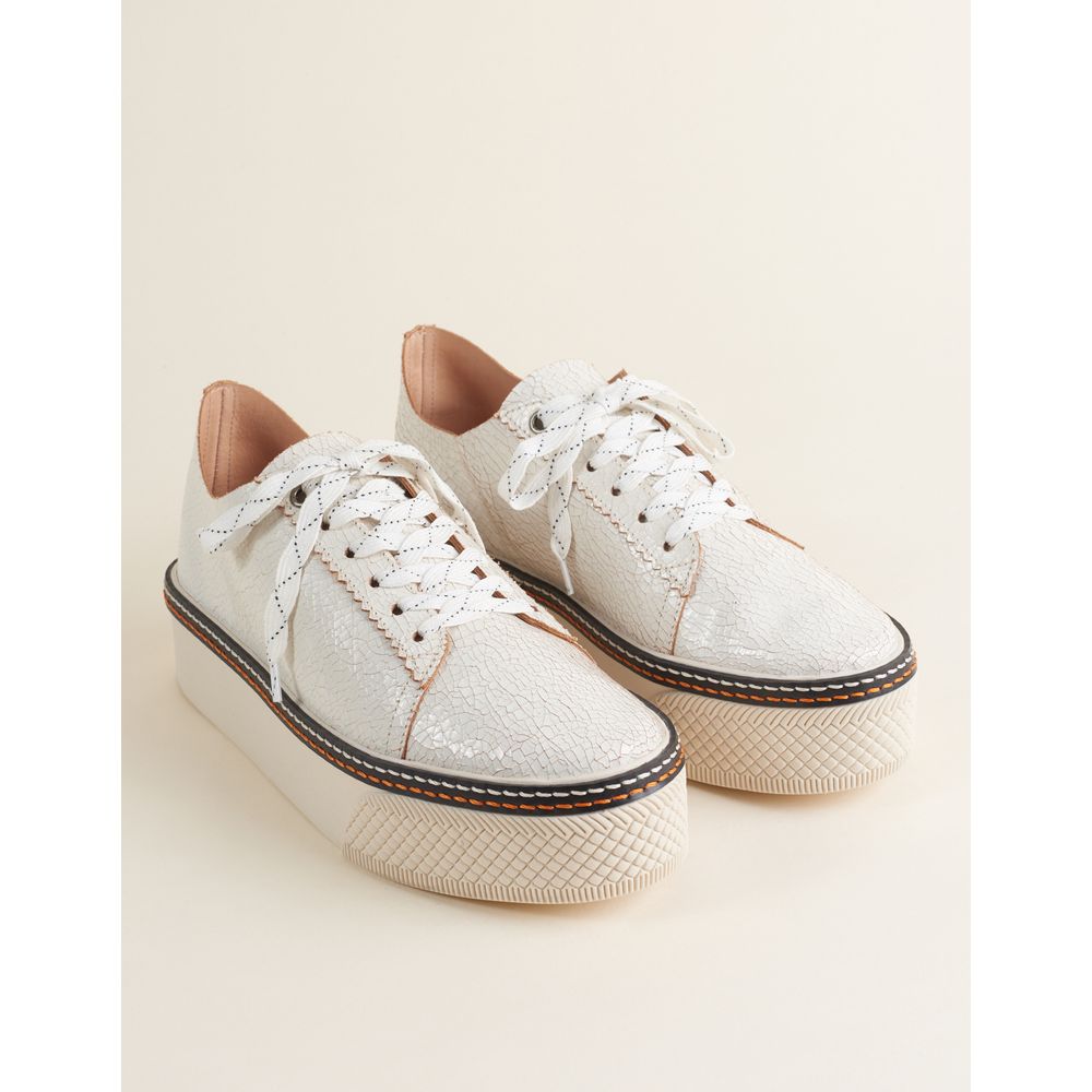 Tênis Via Mia Astral Couro Craquele - Branco
